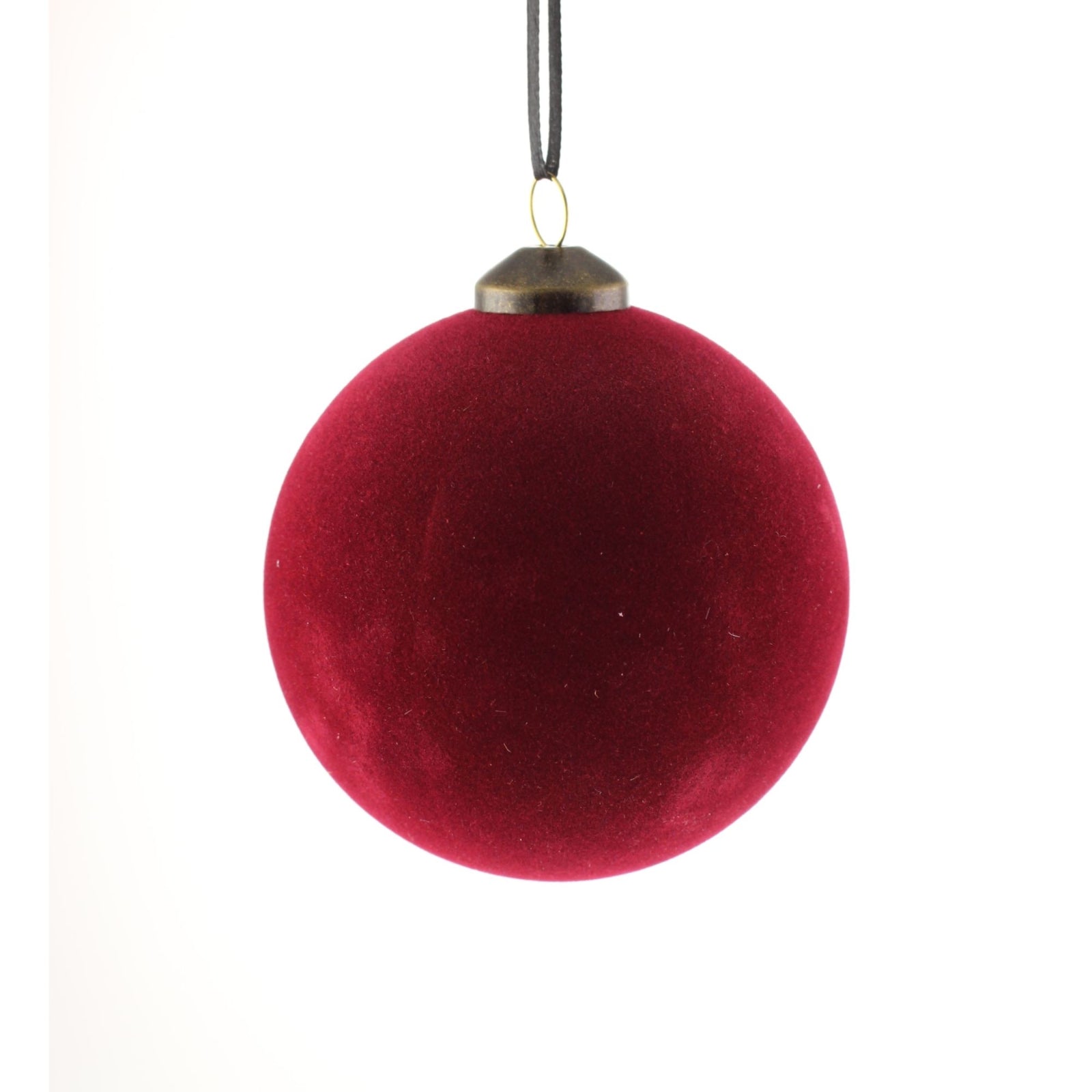 Flocked Velvet Burgundy Red Luxury Christmas Bauble - 8cm