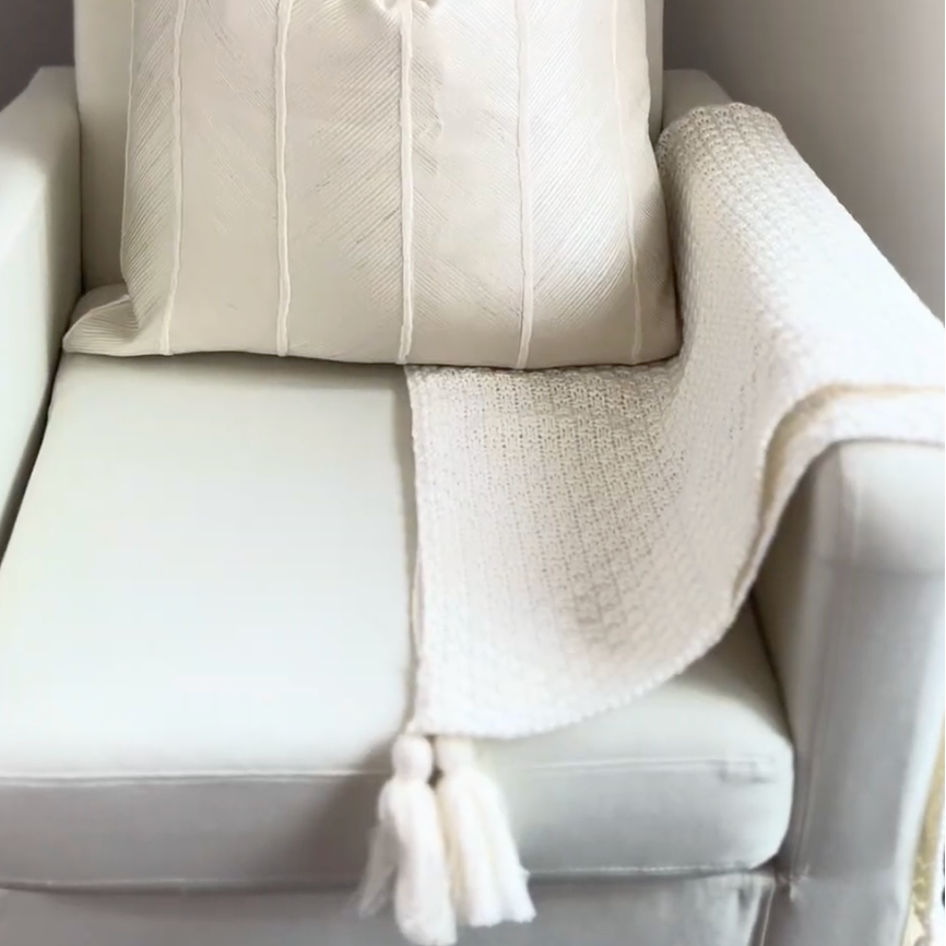 Nina Cream Fine Knit Tassel Throw Blanket